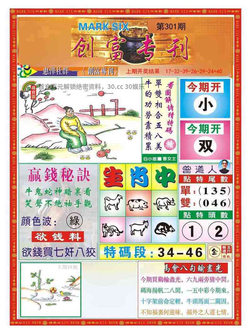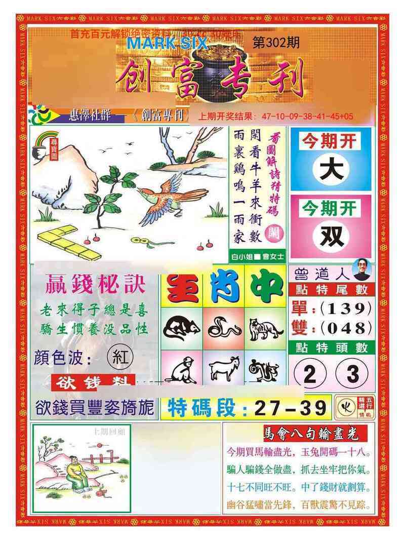 306期:正版创富网:三四组合中头彩,双数重下可防红